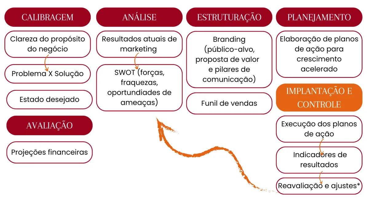 Os dois. Nas sessões de consultoria, direcionamos as estratégias e processos para serem implementados em conjunto com agências e/ou profissionais de marketing, mas também podemos implementar processos prontos, de acordo com o orçamento disponível, para começar a gerar resultados acelerados.